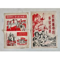 (商品)文*時(shí)期《上海人民公社成立、革命農(nóng)民造反》、《教育革命的豐碩成果》宣傳畫2張合拍